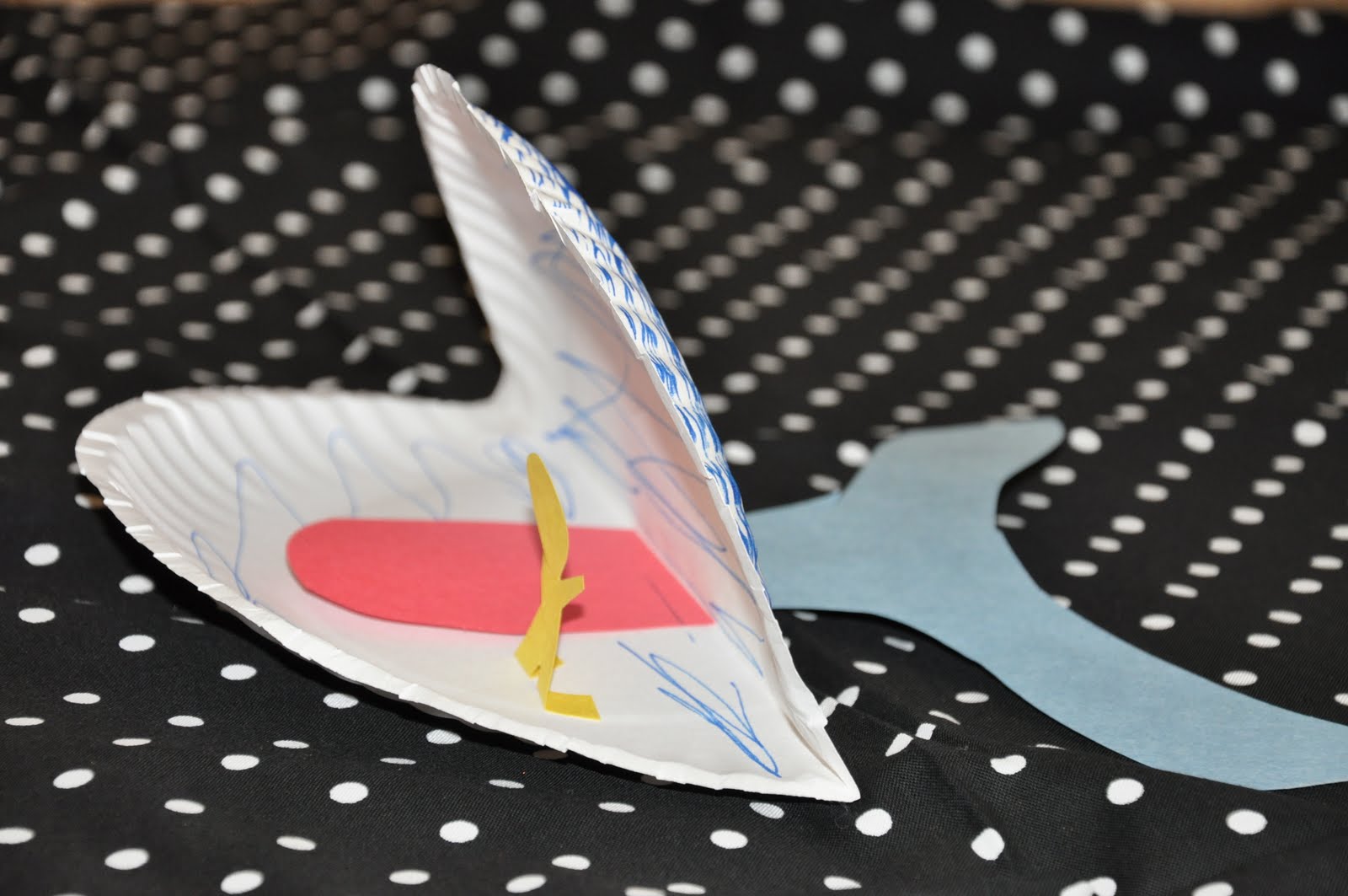 Step 3:   Help the child cut out a whale tail and glue it onto the back of the paper plate.