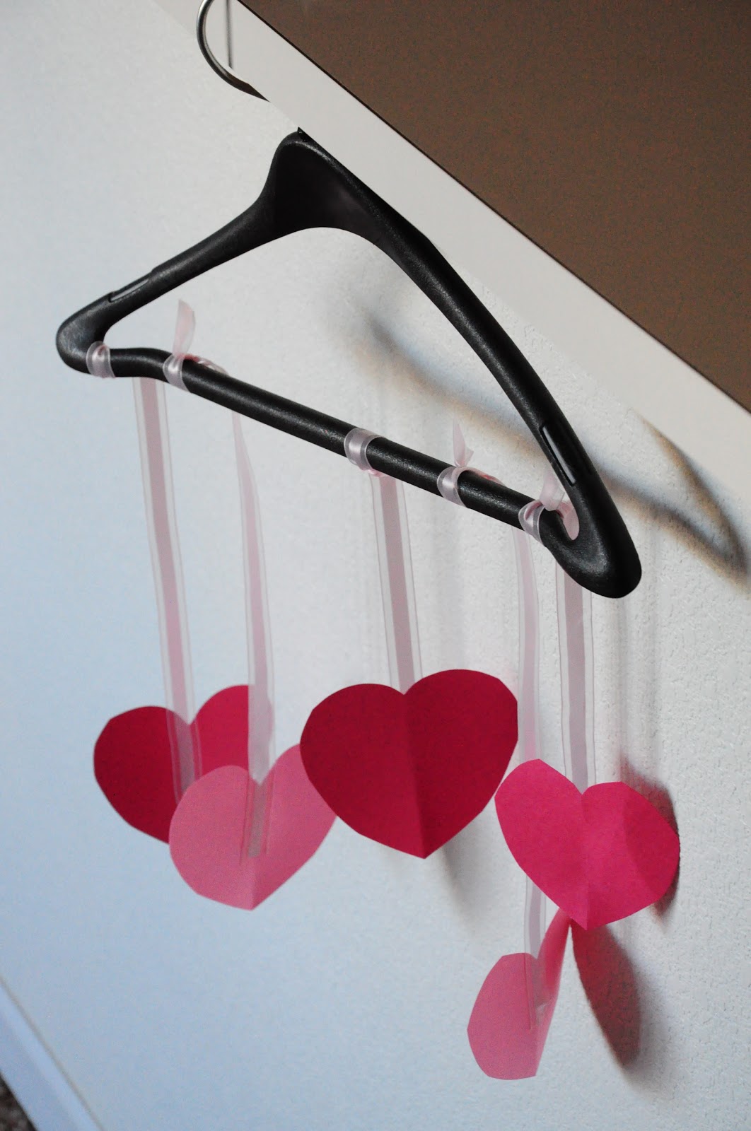 Activity: Cut out several hearts out of the construction paper. Let the child decorate the hearts with markers. Tape the heats to one end of the ribbon. Then, tape the the other end of the ribbon to the hangar. You’ll be making a Love Mobile to remind the child to do everything out of love!
