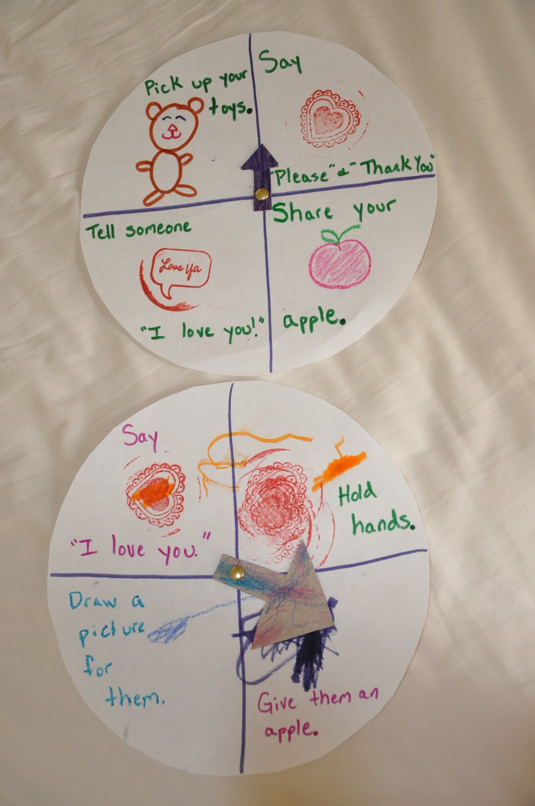 Spin the arrow and have the child do the “something nice” that comes up on their plate when they spin the arrow.