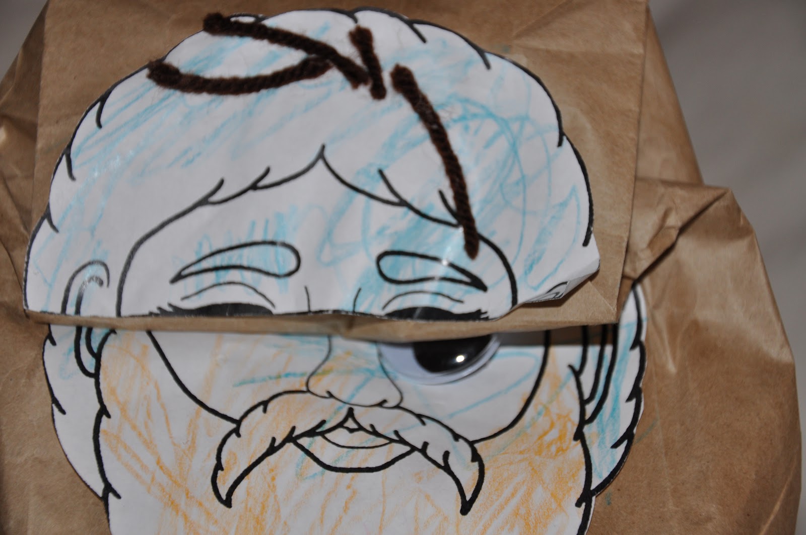 Materials Needed: brown paper sack, construction paper, markers, scissors
