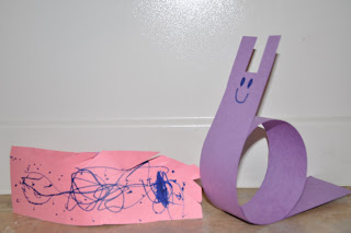 Cut 2 strips of construction paper the same length, about 1 inch wide and 6-8 inches long. Fold one strip into a circle and glue the ends together. With the other, cut a small notch out of one end for the “antennas”. Draw a face under the antennas. Glue the circle to the other strip. Demonstrate how a snail moves slowly, just the way we should speak.