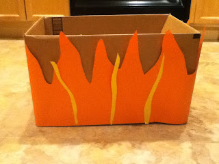 Activity: Cut out flames and glue them onto the box. Let the child march in the box of “fire” as they give thanks for God for protecting them.