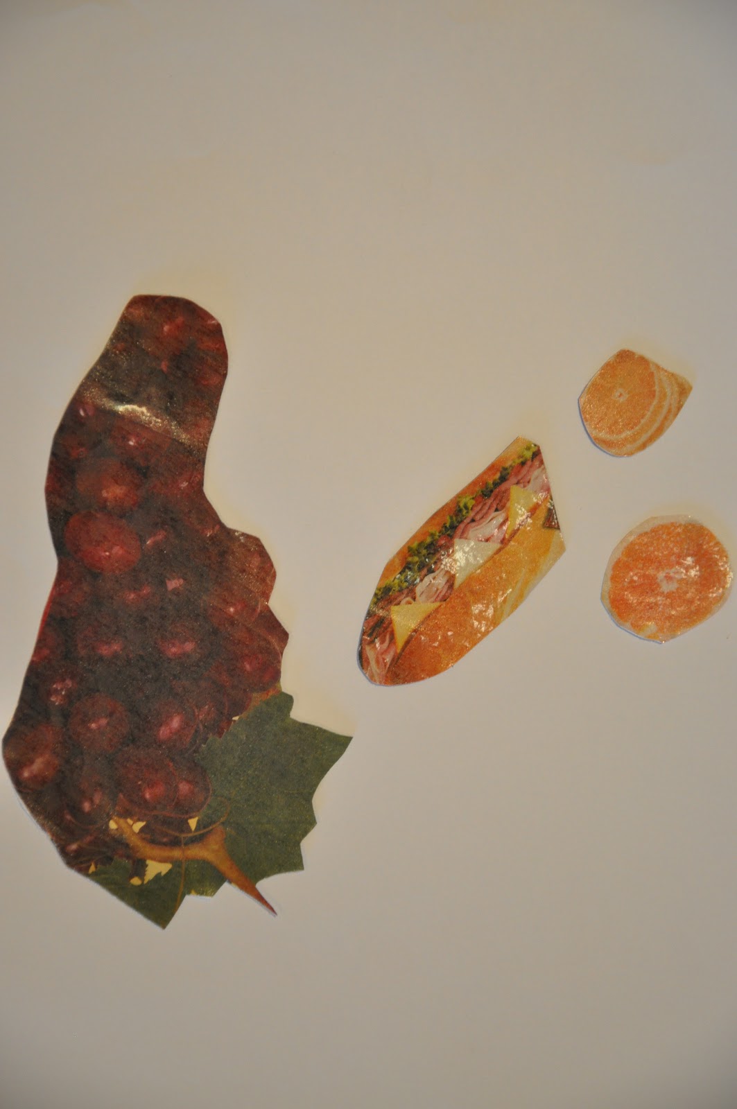 Materials Needed: pictures of food (a good place to get these is in the Sunday paper coupon section or the circulars you get in the mail for grocery stores)